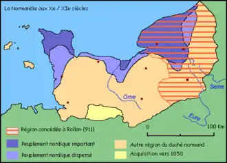 - ^ French normanique cf. RENAUD Jean, La toponymie normanique: Reflet d'une colonisation in FLAMBARD HÉRICHER Anne-Marie, La progression des Vikings, des raids à la colonisation, Publications de l'Université de Rouen, 2003.