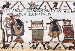 Rollo's descendant William became king of England in 1066 after defeating Harold Godwinson, the last of the Anglo-Saxon kings, at the Battle of Hastings, while retaining the fiefdom of Normandy for himself and his descendants.