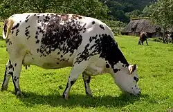 Parts of Normandy consist of rolling countryside typified by pasture for dairy cattle and apple orchards. A wide range of dairy products are produced and exported. Norman cheeses include Camembert, Livarot, Pont l'Évêque, Brillat-Savarin, Neufchâtel, Petit Suisse and Boursin.[26] Normandy butter and Normandy cream are lavishly used in gastronomic specialties. Jersey and Guernsey cattle are famous cattle breeds worldwide, especially to North America.