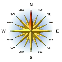 The word north is related to the Old High German nord,[1] both descending from the Proto-Indo-European unit *ner-, meaning "left; below" as north is to left when facing the rising sun.[2] Similarly, the other cardinal directions are also related to the sun's position.[3][4][5]