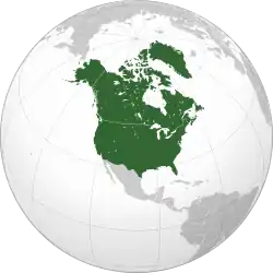 - ^ Includes the U.S. state of Hawaii, which is distant from the North American landmass in the Pacific Ocean and therefore more commonly associated with the other territories of Oceania.