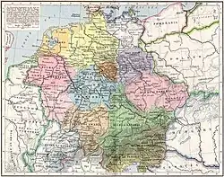 • and the Western part (today most of Schleswig-Holstein and all of Lower Saxony, including the Hanseatic city states and other towns in the region), sometimes known as Nordwestdeutschland and defined by the original homegrounds of the two tribes of the Frisians and Saxons, which would later comprise the Duchy of Saxony (est. 806), the Lower Rhenish–Westphalian Circle (1500), and the Lower Saxon Circle (1512). Nordwestdeutschland also more or less corresponds to the British Zone of Occupation in Allied-occupied Germany between 1945–49.