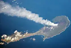 In April 1990, the inhabitants of the western coast of Anatahan were evacuated after earthquake swarms and active fumaroles indicated that an eruption might be imminent, but no eruption occurred at that time. A further earthquake swarm occurred in May 1992. The first historical eruption of Anatahan occurred in May 2003, when a large explosive eruption with a VEI of 4 took place, forming a new crater inside the eastern caldera and causing an ash plume 12 km (7.5 mi) high which impaired air traffic to Saipan and Guam.[38]