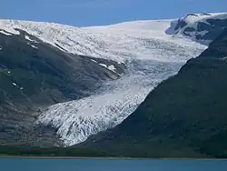 The Saltfjellet range, with its Svartisen glacier and intersecting Arctic Circle, divides Helgeland from the next region, called Salten. Notable peaks in Salten are the Børvasstindan south of Bodø, Suliskongen near Fauske (1,907 metres or 6,257 feet, highest mountain north of the Arctic Circle), the Steigartindan and the phallic Hamarøytinden. Between Saltfjellet and eastern Finnmark, Norway spruce trees have originally been planted and are mostly privately owned. The older plantations are now producing lumber, 80 years after planted.[1]