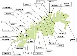 There are large climatic differences from southwest to northeast in this region. Finnmarksvidda in the interior of Finnmark and some valleys in the interior of Troms, experience a more continental climate with much less precipitation and much colder winters compared to the long coastal region.[22][23][24][25]