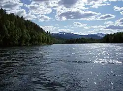 Northern Norway covers about a third of Norway. The southernmost part, roughly the part south of the Arctic Circle, is called Helgeland. Here there is a multitude of islands and skerries on the outside of the coastal range, some flat, some with impressive shapes, like Mount Torghatten, which has a hole through it, and the Seven Sisters near Sandnessjøen. The inland is covered with dense spruce forests and mountains near the Swedish border; some of the biggest rivers in the region are the Vefsna and the Ranelva. The highest mountain in Northern Norway is found here in the Okstindan range south of Mo i Rana with Oksskolten reaching 1,915 metres (6,283 ft) above sea level, and with the glacier Okstindbreen.