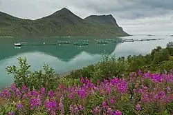 In the winter, the codfish comes to the coastal waters to spawn, especially to the cod fisheries of Lofoten. Mølja, boiled codfish with liver and roe, is a delicacy that today is served in the best restaurants. In the summer, the coalfish, or saithe, bites, and fresh saithe is often served on the beach, boiled in seawater over an open fire, or fried (typically the smaller coalfish). Halibut is traditional Christmas food. Most fish is served plainly poached, only accompanied by boiled potatoes, carrots and possibly fried bacon. A more particular kind of fish is "gammelsei", saithe that has been conserved for a year or more. Other traditions are lutefisk and boknafisk, the latter made from stockfish, and in Nordland often from herring.[9] Seawolf and rose fish are regarded as good food, the latter often eaten salted and poached, with the brain (krus) highly regarded, sometimes fried with onions. In addition to cod, herring and potatoes were traditional staple foods (except in the most northern area). Salmon has long traditions as food along the rivers, and also trout which are common also in the numerous lakes. In the latest decades consumption has increased in correspondence with increased salmon fish farming; smoked salmon is very popular, often on open sandwiches, alone or together with boiled or scrambled eggs or salad.[10]