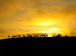 Northern Norway is surrounded by some of the richest seas in the world, and seafood is the main source for traditional cuisine. However, agricultural produce has existed for at least 3,000 years in parts of the area (Helgeland, Salten, Lofoten, Harstad-Kvæfjord).[6] In addition to fishing, each family traditionally had a small farm with a few cows (see Pietro Querinis shipwrecked at Røst in 1432[7]), sheep or goats (goats being preferred in many places due to their superior adaptation to the rough and mountainous terrain found in much of Northern Norway) and had small grain fields (mostly barley).[8] After the introduction (and somewhat later acceptance) of potatoes from the Americas, these became a main staple in much of Northern Norway, as well as many other parts of Norway. Agriculture gradually becomes less important as a food source as one moves further north, and in the northern half (north of Balsfjord/Tromsø area) was usually of minor importance and certainly less important than fishing or Sami reindeer nomadic pastoralism. Hunting has been important ever since the Stone Age, and the comparatively large areas of sparsely settled valleys, fells and mountains still hold wildlife.