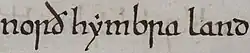 An early mention of Northumberland as norð hẏmbra land "north of Humber land" in the Anglo-Saxon Chronicle
