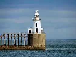 Bamburgh Castle; Morpeth Clock Tower; and the lighthouse on East Pier, Blyth