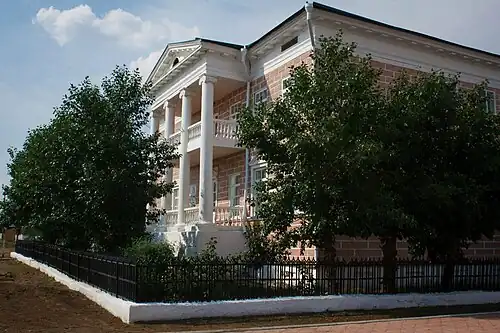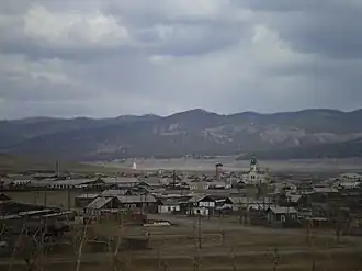 The first fortified settlement of the Russians on the Selenge River, Selenginsky ostrog was located north of the confluence of the Chikoy and Selenge Rivers on the Selenge's right bank.[2] The ostrog was founded by Gavril Lovtsov in 1655, and was located about 20 kilometers (12 mi) southeast of Lake Gusinoye and 85 kilometers (53 mi) southeast of Lake Baikal. The Selenge River soon became part of the main Russo-Chinese trade route, which, by boat, led through Siberia to Lake Baikal, up the Selenge, and then by caravan southeast to Peking. Consequently, the ostrog soon grew and became a major administrative center of the Transbaikal region.[2]