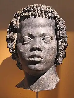 Older scholarship noted that some Egyptian pharaohs may have had Nubian ancestry.[66][67] Richard Loban expressed the view that Mentuhotep II of the 11th Dynasty "was quite possibly of Nubian origin" and cited historical evidence which mentioned that Amenemhet I, founder of the 12th Dynasty, "had a Ta Seti or Nubian mother".[68][69][70] Dietrich Wildung has argued that Nubian features were common in Egyptian iconography since the pre-dynastic era and that several pharaohs such as Khufu and Mentuhotep II were represented with these Nubian features.[71]