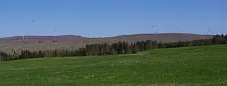 Located west of Route 311 in Colchester County some 20 km north of Truro, the peak is accessible by vehicle using a gated road and is topped by telecommunication towers. A fire lookout tower stood there from 1937 to 2013.[2] A 45-megawatt wind farm was constructed on a 400-acre site on the mountain in 2010.[3] As of 2017 Nova Scotia Power owned 22 Enercon E82 turbines on the site with a total capacity of 50.6 MW.[4]