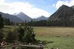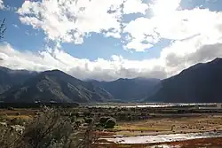 The area around Nyingchi has been settled since Tibet's prehistoric era.[2] Researchers discovered several human bones and burial groups from the Neolithic Age near the Nyang River in the 1970s, suggesting that humans in Nyingchi were engaged in slash-and-burn agriculture and led a relatively sedentary lifestyle as early as 4,000-5,000 years ago.[3] Unearthed artifacts, including net pendants and arrowheads, indicate that the inhabitants of this region, along the ancient Nyang River, Yarlung Zangbo River, and ancient lakes, were involved in both cultivation and fishing activities along the riverbanks.[4]