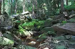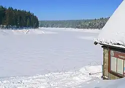 The Oderteich is an historic reservoir about seven kilometres northeast of Sankt Andreasberg in the Upper Harz in central Germany. It was built by miners from St. Andreasberg in the years 1715 to 1722 and, today, is an important component of the water supply network known as the Upper Harz Water Regale (Oberharzer Wasserregal). Moreover, for 170 years, from the time it was completed to the end of the 19th century, the Oderteich had the largest dam in Germany.[1][2] The dam lies at a height of 725 m above NN by the B 242 federal highway, about a kilometre west of its intersection with the B 4.