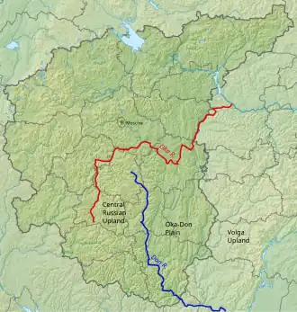 ![]() The Oka–Don Plain is located between the Central Russian Uplands (to the west) and the Volga Uplands to the east. | |