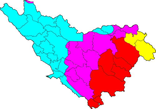 In modern Montenegro, the region includes the municipal areas of Herceg Novi, Nikšić, Pljevlja, Plužine, Šavnik and Žabljak. In modern Bosnia and Herzegovina, the region includes the municipal areas of Čajniče, Foča, Kalinovik and Rudo. In modern Serbia, the region includes the municipal areas of Priboj and Prijepolje.