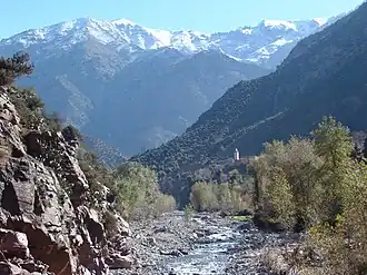 Ourika Valley is a valley in the Moroccan High Atlas along the Ourika River. It is located around 30 km from Marrakech, and is essentially populated by Berber people speaking Shilha. Despite its proximity to Marrakech, it is still considered a relatively well-preserved valley, by its very nature it preserves the traditional mountain way of life.[1]