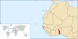Togo – sovereign country located in West Africa bordering Ghana to the west, Benin to the east and Burkina Faso to the north.[1] The country extends south to the Gulf of Guinea, on which the capital Lomé is located. The official language is French and many other languages are spoken as well.