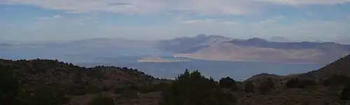 Wildlife of the range include pronghorn antelope, bighorn sheep, coyote, mountain lion and the wild horse. The bighorn was seen wandering in the foothills of the range in Sparks(Wingfield Springs).[14] It is thought to be from a group of bighorns transplanted to the nearby Virginia Range. Bird species include golden eagles, prairie falcons and red-tailed hawks.[15] [16] [17]