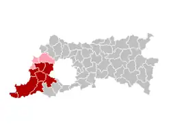 The tourist area marketed under the name Pajottenland en Zennevallei (Pajottenland and Zenne valley) also includes the municipalities Beersel, Drogenbos, Halle, Linkebeek, Sint-Genesius-Rode, which are clustered around the Zenne valley to the south-west of the main Pajottenland region.