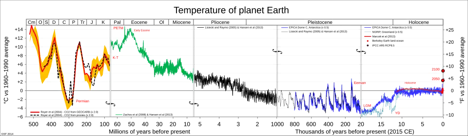 - ^ Royer, Dana L. (1 December 2006). "CO2-forced climate thresholds during the Phanerozoic". Geochimica et Cosmochimica Acta. 70 (23): 5665–5675. Bibcode:2006GeCoA..70.5665R. doi:10.1016/j.gca.2005.11.031.
