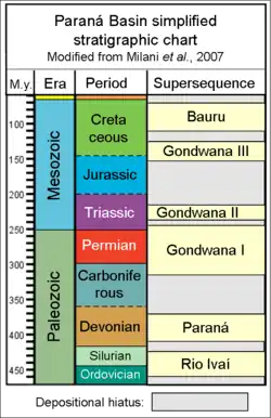 ![]() Paraná Basin – Simplified stratigraphic chart[1] | |