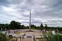 Near the observation deck is a large granite sundial built in 1995 on the top of the dune. The sundial's gnomon is a stone pillar 13.8 metres (45 ft) high. It also includes small steps covered with granite slabs, carved with hour and half-hour notches, as well as one notch for each month, and four additional notches for solstices and equinoxes. The sundial was rebuilt in 2011 following storm damage, which broke the gnomon. The place where the gnomon was broken is clearly seen after its reconstruction.[8]
