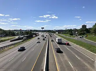 Paterson is in the southern part of Passaic County, which is near the north edge of New Jersey, as a county that spans some hilly areas and has dozens of lakes. The county covers a region about 30 × 20 miles wide (48 × 32 km). The region is split by major roads, including portions of Interstate 80, which runs through Paterson (see map at left). The Garden State Parkway (GSP) cuts across the south of Paterson, near Clifton, New Jersey. The Passaic River winds northeast past Totowa into Paterson, where the river then turns south to Passaic town, on the way to Newark, further south.