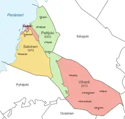 When the municipal system was implemented in 1865, the municipality was called Salon emäseurakunta, with its seat in the village of Pattijoki. The area of the later Saloinen municipality was known as Salon kappeliseurakunta or Salo for short. The municipality has been called Pattijoki since the early 20th century, becoming the official name in 1920.[2]