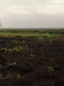 Burned peatland due to 2015 El Niño event in South Sumatra, Indonesia.