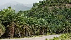 Palm oil has increasingly become one of the world's largest crops. In comparison to alternatives, palm oil is considered to be among the most efficient sources of vegetable oil and biofuel, requiring only 0.26 hectares of land to produce 1 ton of oil.[58] Palm oil has therefore become a popular cash crop in many low-income countries and has provided economic opportunities for communities. With palm oil as a leading export in countries such as Indonesia and Malaysia, many smallholders have found economic success in palm oil plantations. However, the land selected for plantations are typically substantial carbon stores that promote biodiverse ecosystems.[59]