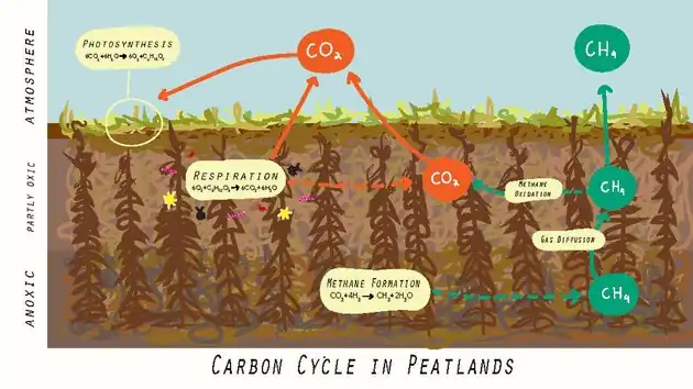 17. ^ Belyea, Lisa R.; Malmer, Nils (July 2004). "Carbon sequestration in peatland: patterns and mechanisms of response to climate change". Global Change Biology. 10 (7): 1043–1052. Bibcode:2004GCBio..10.1043B. doi:10.1111/j.1529-8817.2003.00783.x. S2CID 39994255.