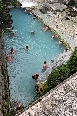 - Pozar thermal baths: The hot springs are located in a mountainous area (altitude 360–390 m) and occupy an area of 30 hectares (75 acres). Five spa gush along the warm river, which continues to flow in the basin of Almopia.