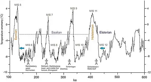 - ^ a b c d e f g h i j Van Andel, T.; Tzedakis, P. C. (1 January 1996). "Palaeolithic landscapes of Europe and environs, 150,000-25,000 years ago: An overview". Quaternary Science Reviews. 15 (5–6): 481–500. Bibcode:1996QSRv...15..481V. doi:10.1016/0277-3791(96)00028-5.