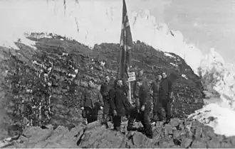In 1926 and 1927, the Norwegian sailor Eyvind Tofte circumnavigated and surveyed the island from Odd I. However, he was also prevented from landing.[3] The Norwegian whale-ship owner Lars Christensen financed several expeditions to the Antarctic, in part for research and in part to claim land for Norway. The latter was motivated by the British taxation of whaling stations in the Antarctic, and Christensen hoped to be able to establish stations on Norwegian territory to gain better privileges and so at least the taxes went to his home country.[4] The first expedition to land on the island was the Christensen-financed second Norvegia expedition, led by Nils Larsen and Ola Olstad. They landed on 2 February 1929 and claimed the island for Norway. Larsen attempted to land again in 1931, but was hindered by pack ice.[3] On 6 March 1931, a Norwegian royal proclamation declared the island under Norwegian sovereignty[4] and on 23 March 1933 the island was declared a dependency.[3][5]