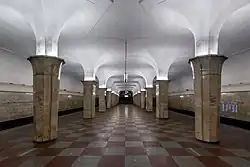 Kropotkin is the namesake for multiple regional entities.[53] The Konyushennaya district in Moscow, where Kropotkin was born, is now known by his name, as the Kropotkinsky district, including the Kropotkinskaya metro station.[92] He is the namesake for a large town in the North Caucasus (southwest Russia)[53][93] and a small town in Siberia.[53] The Kropotkin Range he was first to cross in the Siberian Patom Highlands was named for him,[24] as was a peak in East Antarctica.[94]