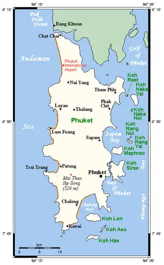 ![]() Map of Phuket (beaches in brown) | |