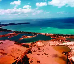 In the northern, more mountainous part of the island, the Khao Phra Thaeo No-Hunting Area spans over 20 km2 (7.7 sq mi), dedicated to preserving rainforest ecosystems. This reserve's three highest peaks include Khao Prathiu (384 metres (1,260 ft)), Khao Bang Pae (388 metres (1,273 ft)), and Khao Phara (422 metres (1,385 ft)). Additionally, the Sirinat National Park on the northwest coast, established in 1981, encompasses an area of 90 km2 (35 sq mi), including 68 km2 (26 sq mi) of marine area. This park is significant for encompassing the Nai Yang Beach, a nesting site for sea turtles.[25] The total forested area of Phuket is approximately 113 km2 (44 sq mi), accounting for 20.6 percent of the province's total area.[1]