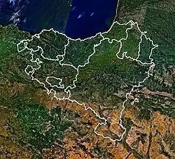 The main natural limits of the Basque Country are the Bay of Biscay (south-east of Cantabrian Sea) to the north and westside, and in the south side, the Ebro river. The highest point in the Basque Country is the Hiru Erregeen Mahaia peak (2438 m high).