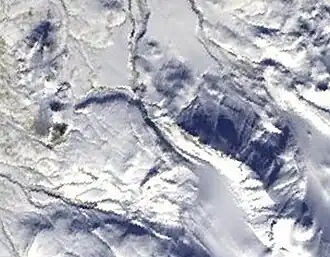 ![]() Pillow Ridge (bottom right) and Tsekone Ridge (upper left) | |