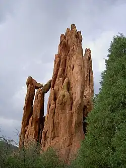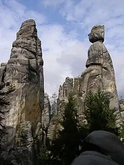 A pinnacle, tower, spire, needle, monument, or natural tower (German: Felsnadel, Felsturm or Felszinne) in geology is an individual column of rock, isolated from other rocks or groups of rocks, in the shape of a vertical shaft or spire. is a natural geomorphological shape and a structural denudation shape of the relief. It is about an isolated, tall and often also slender column or prism, reminiscent of a tower in its shape. A specific type of rock tower is the rock needle.[1]