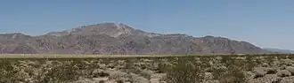 The Pinto Mountains are in southern California, USA, at the north-central part of Joshua Tree National Park. Most of the range is in northern Riverside County; part is in southern San Bernardino County. The range reaches an elevation of 1,403 meters (4,603 ft) south-southeast of the city of Twentynine Palms.[2] The range is made up of dark gneiss, and the creosote bush is the dominant plant in the area.