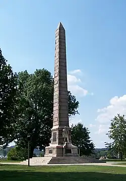 Tourists at the monument of the Battle of Point Pleasant in Tu-Endie-Wei State Park