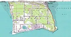 During the COVID-19 pandemic, Point Roberts was acclaimed as the "safest place" for avoiding coronavirus due to its isolation from the mainland United States and Canada and very low case numbers.[23][24] Because of limited access to the rest of Whatcom County and border closures into Canada, the case numbers remained very low.[25] The City of Delta installed a chain-link fence at the end of English Bluff Road in 2025 to deter accidental crossings after an elderly man walked into Point Roberts. The fence was poorly received by local residents and at least one Delta council member demanded its removal.[26][27]