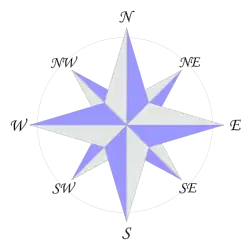 - ^ a b See Wiktionary definitions: north; northeast; east; southeast; south; southwest; west; northwest
