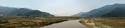 Pokhara is in the northwestern corner of the Pokhara Valley,[31] which is a widening of the Seti Gandaki valley that lies in the region (Pahad) of the Himalayas. In this region, the mountains rise very quickly,[32] and within 30 kilometres (19 miles), the elevation rises from 1,000 to 7,500 metres (3,300 to 24,600 feet). As a result of this sharp rise in altitude the area of Pokhara has one of the highest precipitation rates in the country (3,350 mm/year or 131 inches/year in the valley to 5600 mm/year or 222 inches/year in Lumle).[33] Even within the city, there is a noticeable difference in rainfall between the south and the north: The northern part at the foothills of the mountains experiences a proportionally higher amount of precipitation. The Seti Gandaki is the main river flowing through the city.[34] The Seti Gandaki (White Gandaki) and its tributaries have created several gorges and canyons in and around Pokhara that give intriguingly long sections of terrace features to the city and surrounding areas. These long sections of terraces are interrupted by gorges that are hundreds of metres deep.[35] The Seti gorge runs through Pokhara from north to south and then west to east; at places, these gorges are only a few metres wide. In the north and south, the canyons are wider.[36]