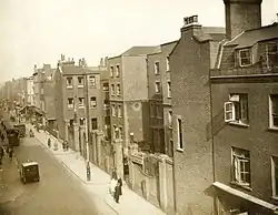 He tried to squeeze out some childhood memory that should tell him whether London had always been quite like this. Were there always these vistas of rotting nineteenth-century houses, their sides shored up with baulks of timber, their windows patched with cardboard and their roofs with corrugated iron, their crazy garden walls sagging in all directions? And the bombed sites where the plaster dust swirled in the air and the willow-herb straggled over the heaps of rubble; and the places where the bombs had cleared a larger patch and there had sprung up sordid colonies of wooden dwellings like chicken-houses.[43]