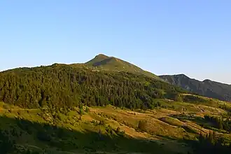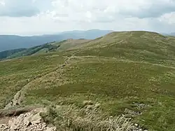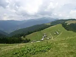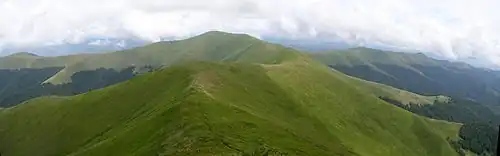 Polonyna (Ukrainian and Rusyn: полонина, romanized: polonyna; Polish: połonina; Slovak: polonina) is a specific, regionally-focused geographic term, that is used as a designation for areas of montane meadows (a landform type) in the upper subalpine or alpine zones of the Carpathian Mountains. The term polonyna was introduced to English from Slavic languages, in order to designate various mountainous regions, mainly in the Eastern Carpathians, and also in the Western Carpathians. The polonyna type areas of montane meadows are very frequent in the Outer Eastern Carpathians, particularly in the Eastern Beskids. Throughout history, they were used for pasture, and in modern times they have become a popular destination for various forms of recreational tourism.[1]