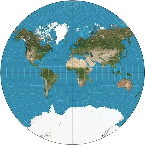 - Van der Grinten projection—projects entire earth into one circle; all meridians and parallels are arcs of circles.